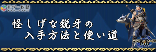 モンハンライズ(MHRise)のアイテム「怪しげな鋭牙」の入手方法と使い道を掲載。怪しげな鋭牙を使用する装備や装飾品の一覧も掲載しているので、モンハンライズを攻略する際の参考にどうぞ!