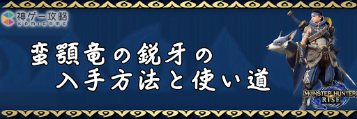 モンハンライズ(MHRise)のアイテム「蛮顎竜の鋭牙」の入手方法と使い道を掲載。蛮顎竜の鋭牙を使用する装備や装飾品の一覧も掲載しているので、モンハンライズを攻略する際の参考にどうぞ!
