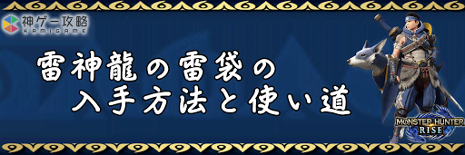 モンハンライズ(MHRise)のアイテム「雷神龍の雷袋」の入手方法と使い道を掲載。雷神龍の雷袋を使用する装備や装飾品の一覧も掲載しているので、モンハンライズを攻略する際の参考にどうぞ!
