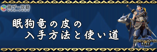 モンハンライズ(MHRise)のアイテム「眠狗竜の皮」の入手方法と使い道を掲載。眠狗竜の皮を使用する装備や装飾品の一覧も掲載しているので、モンハンライズを攻略する際の参考にどうぞ!