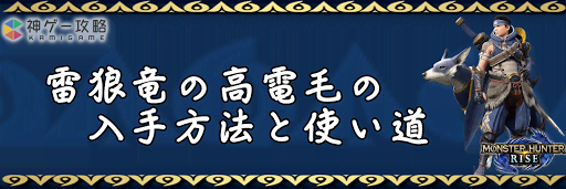 モンハンライズ(MHRise)のアイテム「雷狼竜の高電毛」の入手方法と使い道を掲載。雷狼竜の高電毛を使用する装備や装飾品の一覧も掲載しているので、モンハンライズを攻略する際の参考にどうぞ!