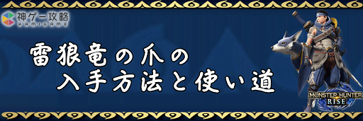 モンハンライズ(MHRise)のアイテム「雷狼竜の爪」の入手方法と使い道を掲載。雷狼竜の爪を使用する装備や装飾品の一覧も掲載しているので、モンハンライズを攻略する際の参考にどうぞ!