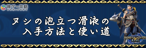 モンハンライズ(MHRise)のアイテム「ヌシの泡立つ滑液」の入手方法と使い道を掲載。ヌシの泡立つ滑液を使用する装備や装飾品の一覧も掲載しているので、モンハンライズを攻略する際の参考にどうぞ!