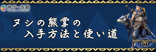 モンハンライズ(MHRise)のアイテム「ヌシの熊掌」の入手方法と使い道を掲載。ヌシの熊掌を使用する装備や装飾品の一覧も掲載しているので、モンハンライズを攻略する際の参考にどうぞ!