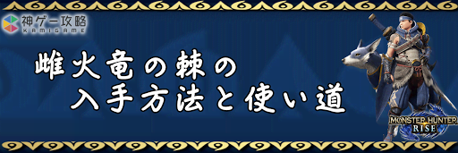 モンハンライズ(MHRise)のアイテム「雌火竜の棘」の入手方法と使い道を掲載。雌火竜の棘を使用する装備や装飾品の一覧も掲載しているので、モンハンライズを攻略する際の参考にどうぞ!