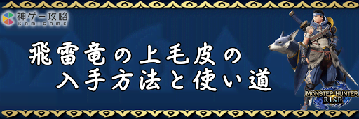 モンハンライズ(MHRise)のアイテム「飛雷竜の上毛皮」の入手方法と使い道を掲載。飛雷竜の上毛皮を使用する装備や装飾品の一覧も掲載しているので、モンハンライズを攻略する際の参考にどうぞ!