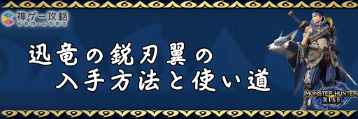 モンハンライズ(MHRise)のアイテム「迅竜の鋭刃翼」の入手方法と使い道を掲載。迅竜の鋭刃翼を使用する装備や装飾品の一覧も掲載しているので、モンハンライズを攻略する際の参考にどうぞ!