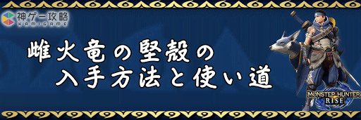 モンハンライズ(MHRise)のアイテム「雌火竜の堅殻」の入手方法と使い道を掲載。雌火竜の堅殻を使用する装備や装飾品の一覧も掲載しているので、モンハンライズを攻略する際の参考にどうぞ!