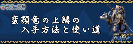 モンハンライズ(MHRise)のアイテム「蛮顎竜の上鱗」の入手方法と使い道を掲載。蛮顎竜の上鱗を使用する装備や装飾品の一覧も掲載しているので、モンハンライズを攻略する際の参考にどうぞ!