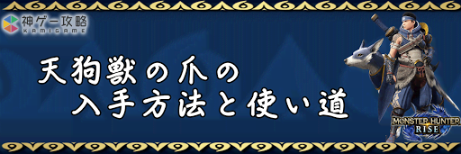 モンハンライズ(MHRise)のアイテム「天狗獣の爪」の入手方法と使い道を掲載。天狗獣の爪を使用する装備や装飾品の一覧も掲載しているので、モンハンライズを攻略する際の参考にどうぞ!