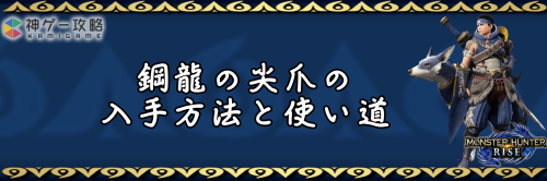 モンハンライズ(MHRise)のアイテム「鋼龍の尖爪」の入手方法と使い道を掲載。鋼龍の尖爪を使用する装備や装飾品の一覧も掲載しているので、モンハンライズを攻略する際の参考にどうぞ!