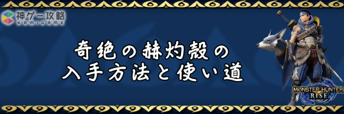 モンハンライズ(MHRise)のアイテム「奇絶の赫灼殻」の入手方法と使い道を掲載。奇絶の赫灼殻を使用する装備や装飾品の一覧も掲載しているので、モンハンライズを攻略する際の参考にどうぞ!