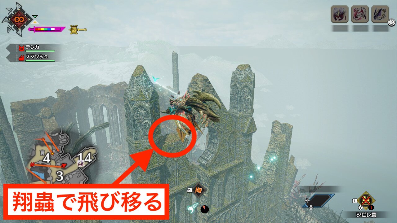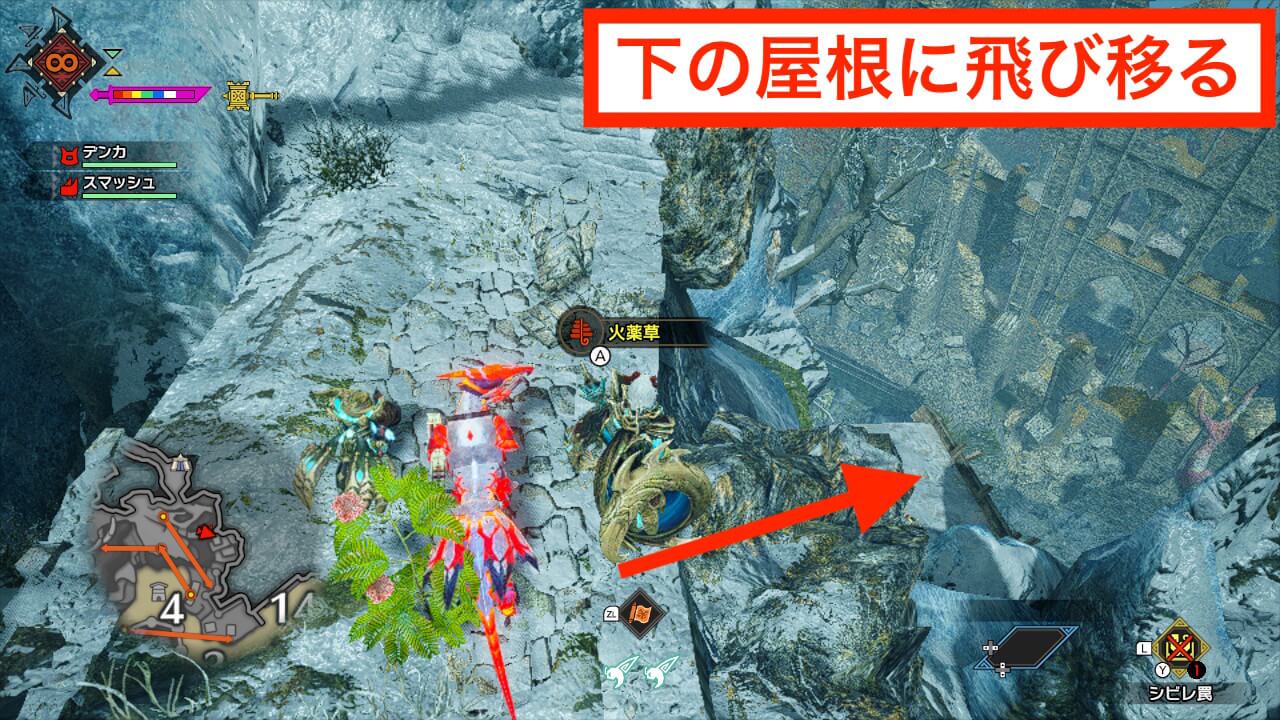 手記3はエリア4南西の大翔蟲を使った先にあるエリア14の建物の上にある。下から登るのも可能だが、大翔蟲を使えば簡単に頂上まで辿り着ける。