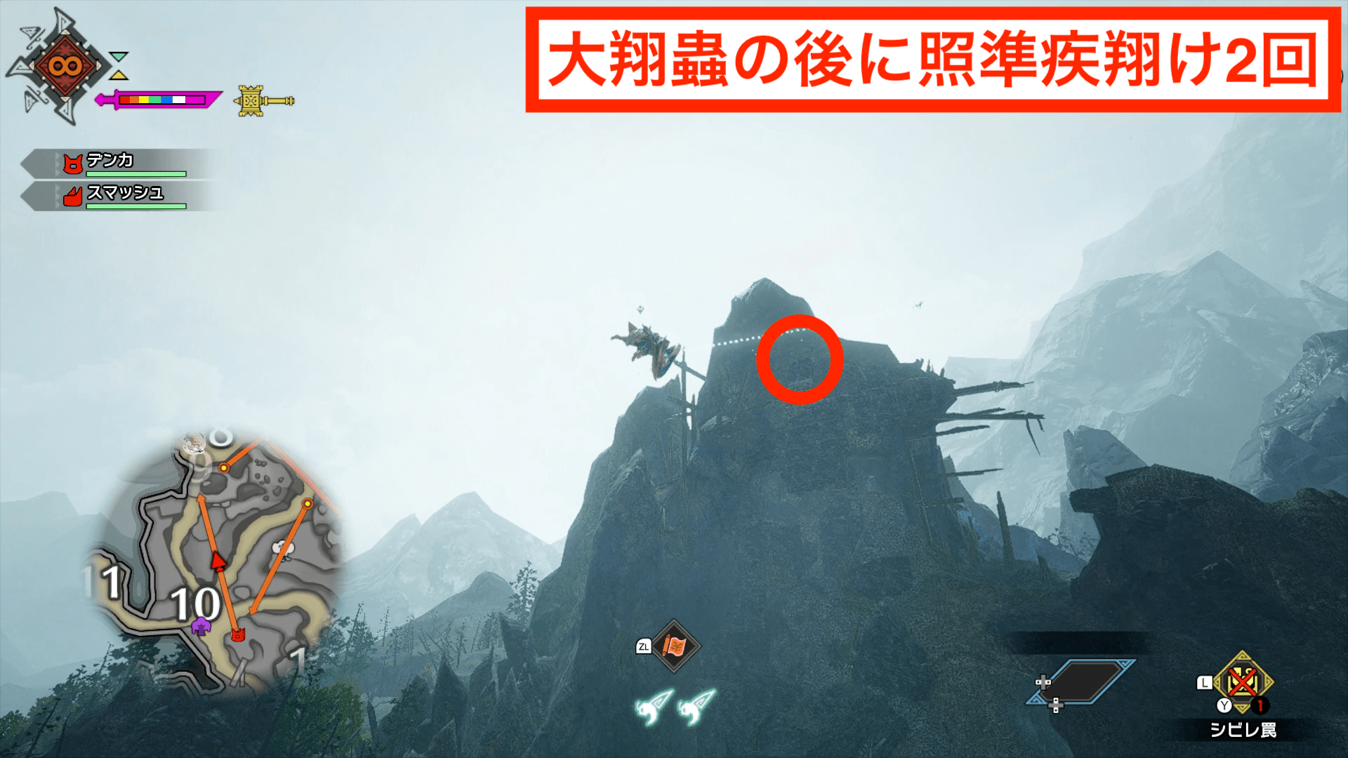 手記6はエリア10の南東の高台にある大翔蟲を使った先で翔蟲を使って移動すれば楽に辿り着ける。地上から登る方法もあるが、地上からだと時間がかかるため、大翔蟲の使用がおすすめ。