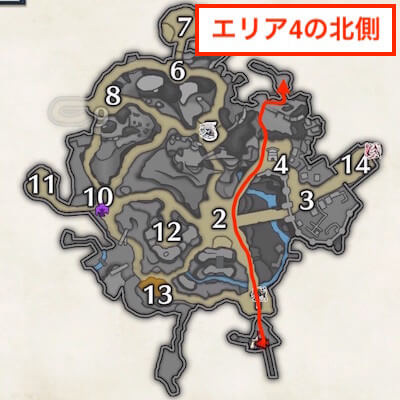 サブキャンプはエリア4の崖を登った先