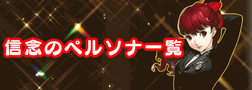 ペルソナ5 ザ・ロイヤル(P5R)の「信念」のペルソナを一覧にして掲載。入手時のレベルや主な合成例、ペルソナを作るのに必要なアルカナの組み合わせも紹介しているので、ペルソナ5Rで効率よく攻略する際の参考にどうぞ!