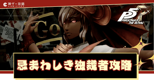 ペルソナ5 ザ・ロイヤル(P5R)の中ボス「忌まわしき独裁者」の攻略を掲載。ボスの弱点や倒し方、おすすめのペルソナを紹介。ペルソナ5Rでニイジマパレスを攻略する際の参考にどうぞ。