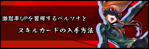 『ペルソナ5スクランブル』におけるスキル「激怒率UP」について掲載!「激怒率UP」を習得するペルソナ一覧をはじめ、スキルカードの入手方法も掲載しているため、P5Sを攻略する際の参考にどうぞ。