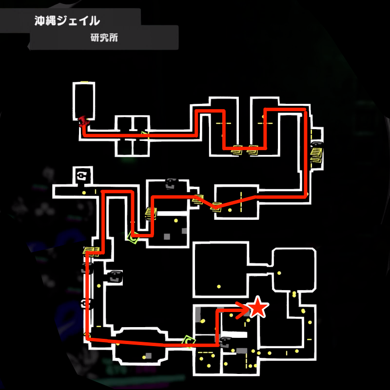 | 1 | 入り口から研究所エリアを進む。 |