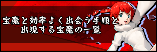 『ペルソナ5スクランブル』における「宝魔」について掲載している。法的効率よく出会う手順や宝魔の出現率を上げる方法、各ジェイルに出現する宝魔とその弱点などを解説しているので、P5Sを攻略する際の参考にどうぞ。