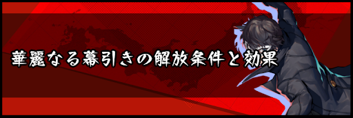 『ペルソナ5スクランブル』におけるBANDスキル「華麗なる幕引き」について掲載!「華麗なる幕引き」の解放条件と効果に加え、必要な経験値(pt)なども掲載しているため、P5Sを攻略する際の参考にどうぞ。