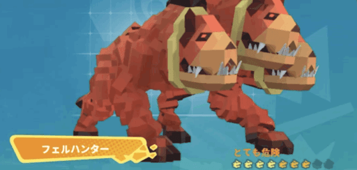 フェルハンターは高い体力と攻撃力を持っており、戦闘能力が非常に高い。かみつき攻撃は、革や肉などの素材を集めることにも特化している。
