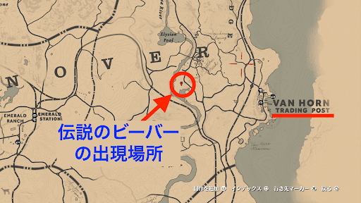 おすすめの狩り場所は、伝説のビーバーの生息地付近にある巣である。伝説のビーバーは、ヴァンホーン交易所西の川に生息している。