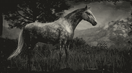 | ハンガリアンハーフは屈強な体を持つ軍馬に分類される。大型で、立派な頭部を持つ。亜麻栗毛とパイボールドトビアノの毛色を持つハンガリアンハーフは野生に生息し、ダップルダークグレーの毛色を持つ個体は馬屋で購入できる。大胆な性格を持ち、戦闘に最適。扱いやすいが他の軍馬と比べてやや生命力が劣る。スタミナは良好、スピードと加速度は平均的。 |