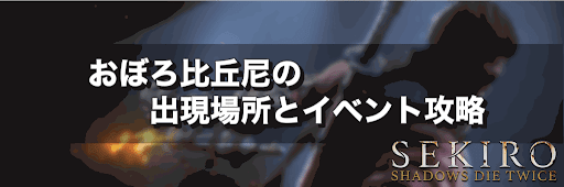 SEKIRO(せきろう/隻狼)のNPC「おぼろ比丘尼」の出現場所とイベント情報を掲載。おぼろ比丘尼(信心深き者)のイベント攻略をはじめ、イベント攻略に必要なアイテム、貰える報酬アイテムも解説しているため、せきろう(せきろ/SEKIRO)で「信心深き者(おぼろ比丘尼)」のNPCイベントを攻略する際の参考にしてほしい。
