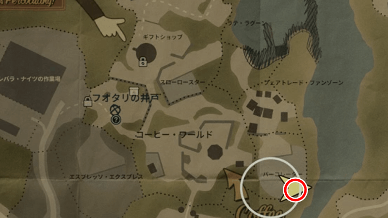 マップを頼りに、コーヒー・ワールドのギフトショップへ行こう。ギフトショップの入口は鍵で封鎖されており、開けるにはスクリュードライバーが必要となる。
