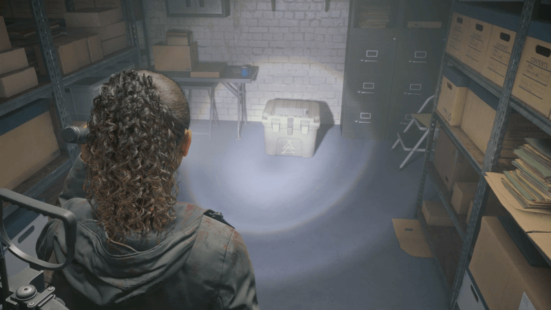 地下の検死室へ向かい、ケイシーと話そう。ケイシーからは、1階の電力を戻すためのヒューズを受け取れる。