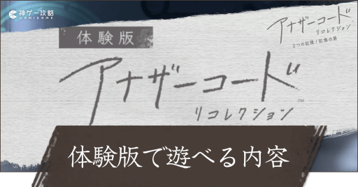 アナザーコードリコレクション(2つの記憶/記憶の扉)の体験版でプレイできる内容を紹介。体験版で遊べる範囲についてはもちろん、セーブデータの引き継ぎについても掲載しているため、アナザーコードリコレクションの体験版の内容を知りたい際の参考にどうぞ。