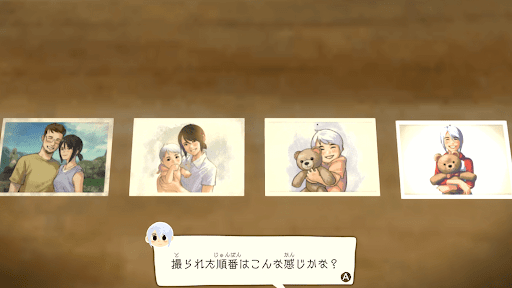 屋根橋のセキュリティ解除が完了したら、パパのコテージへ向かおう。パパとの会話が完了したら、パパのPCのログインパスワードを探す。パパのデスクにある写真がヒントになっており、写真を時系列順に並べるとログインパスワードになる。