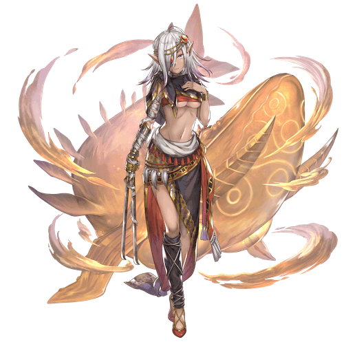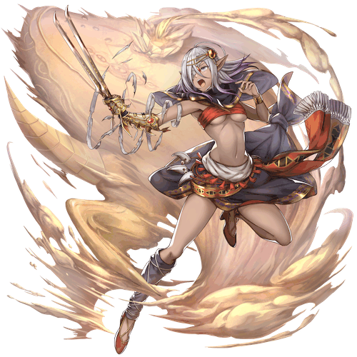 | 砂の民と呼ばれるエルフの一員。エルフ族に古より伝わる砂漠クジラへ奉じる舞を踊る聖なる踊り手。過去のある出来事がきっかけに、踊ることに対して恐れを抱くようになる。 |