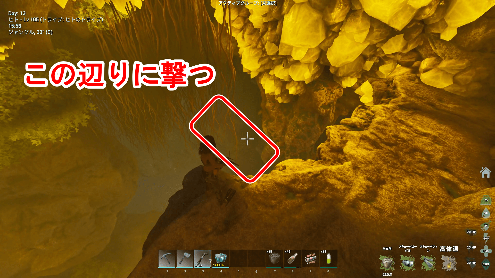 | おすすめ生物/装備 | ・皮装備 ・スキューバ装備 ・グラップリングフック ・ピッケル ・ラベジャー ・メディカルブリュー ・興奮剤 ・解毒剤(弱) |