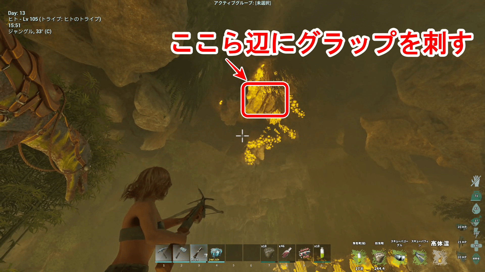 14天井の黄色い場所にグラップリングを撃つ