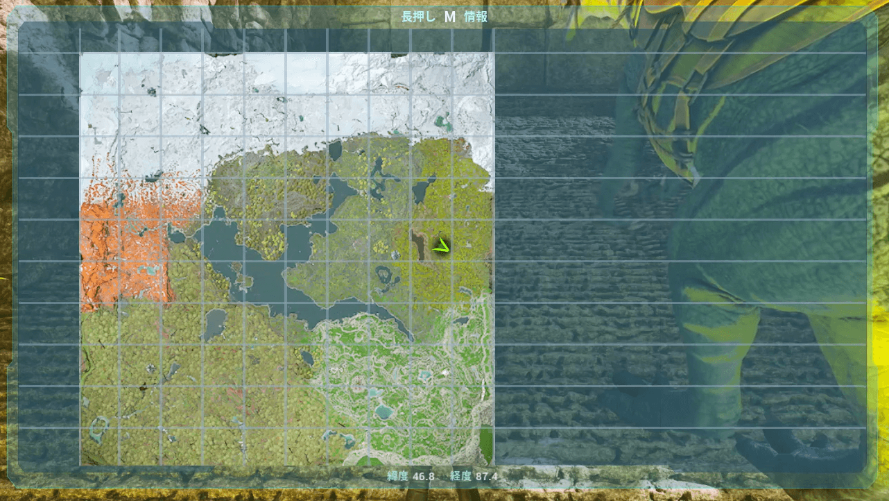 マップ東にある入口に向かう。座標は46.9/87.5付近。