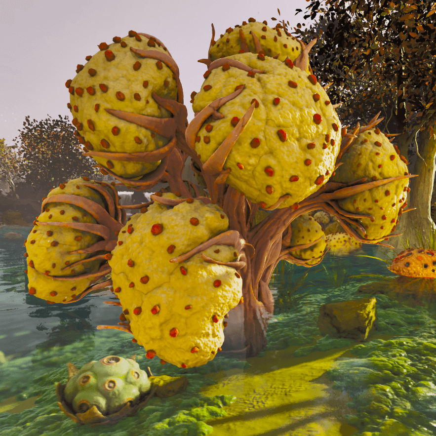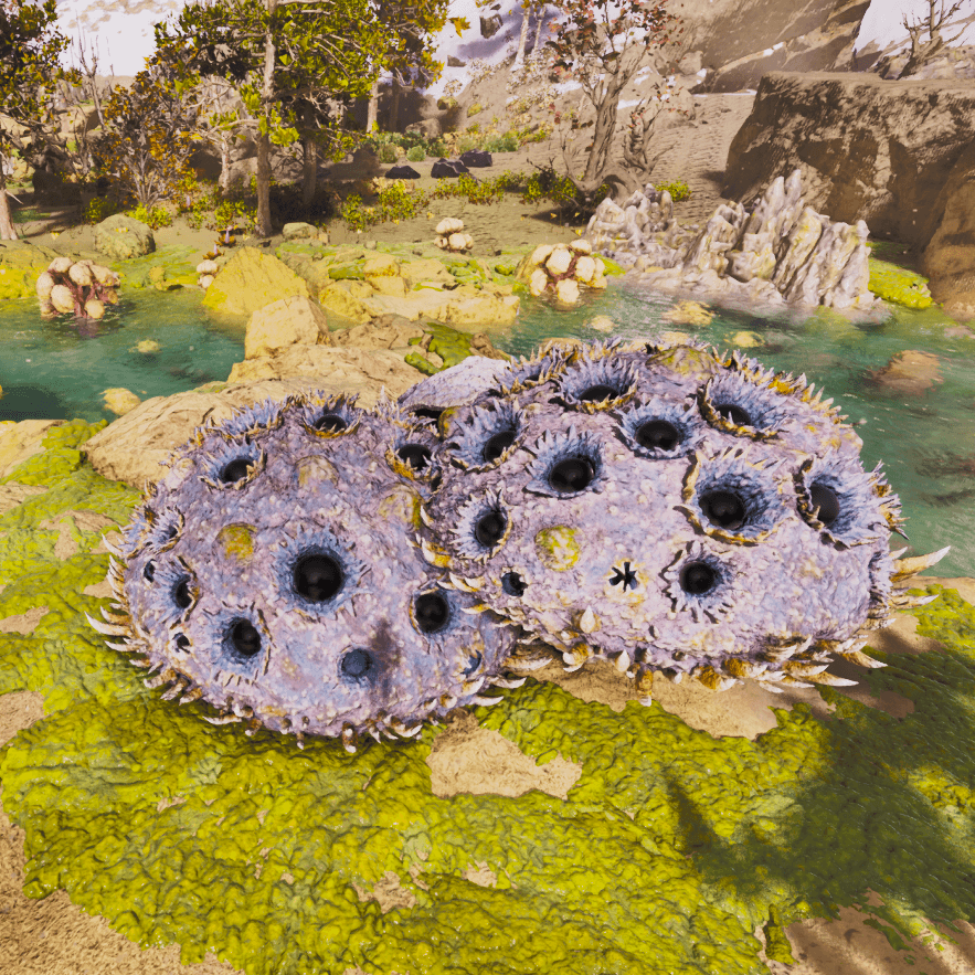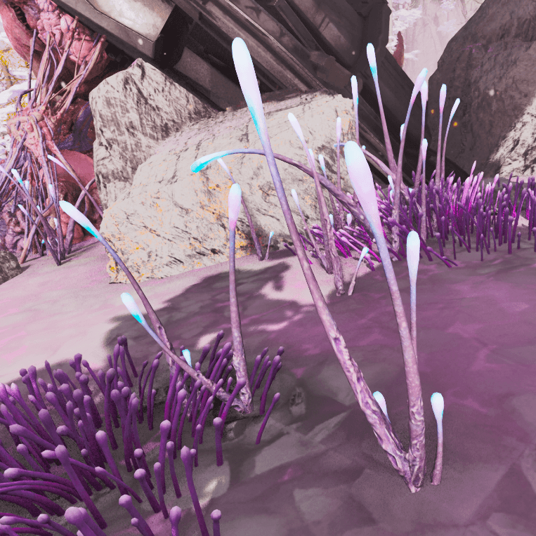 真菌のきのこは、温泉バイオームに自生している白い傘のキノコのような木から採取できる。レアマッシュルームやアガーラビック/金のマッシュルーム、バイオトキシンも併せて採取可能だ。