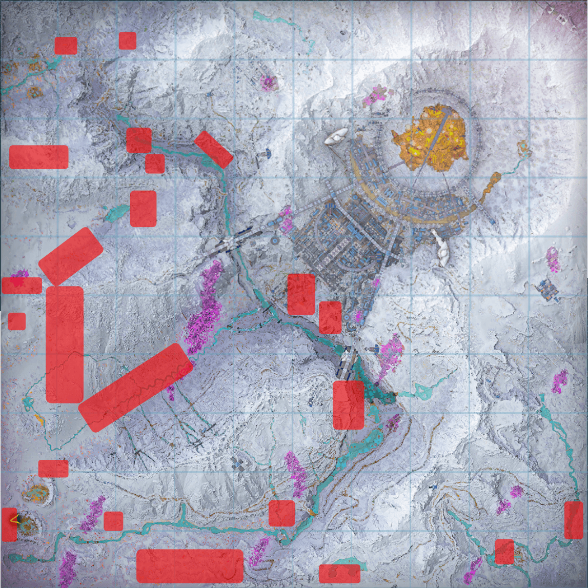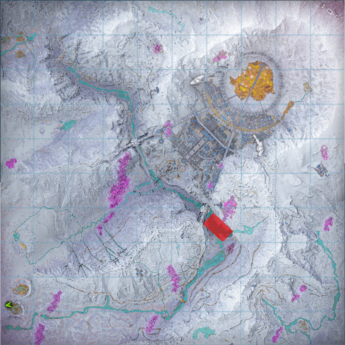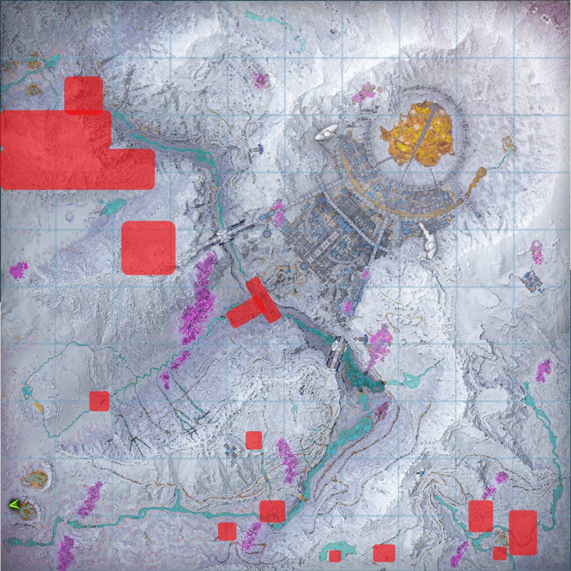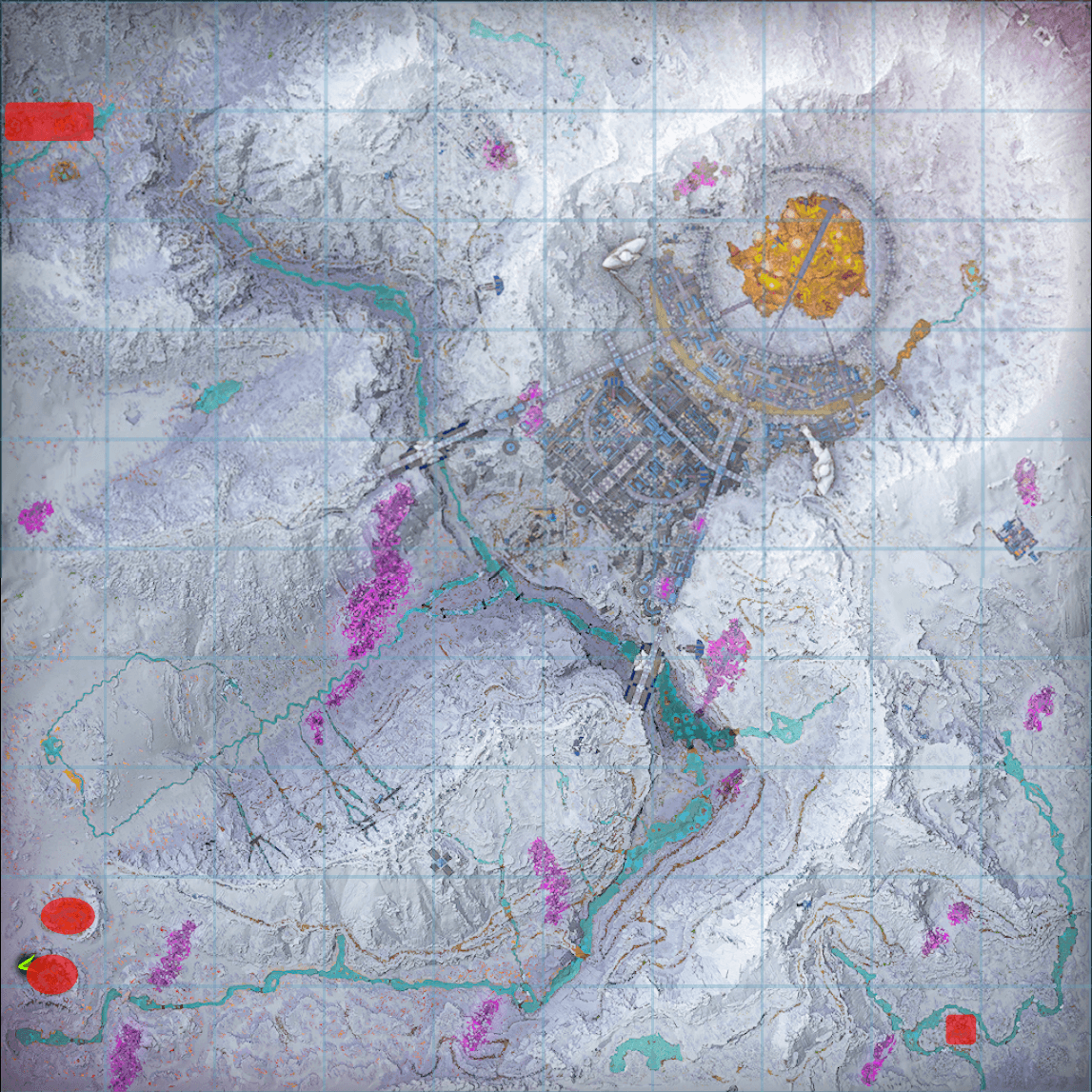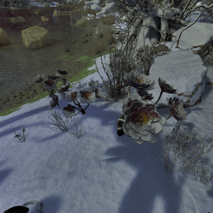 シティとカルデラにある赤い水の底。水深は浅くサバイバー単身で採取可能。 |