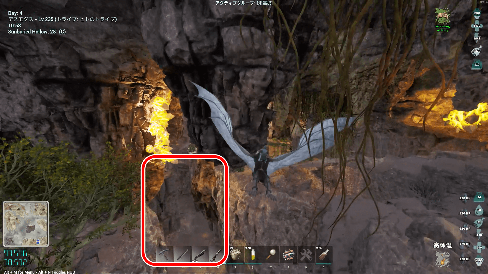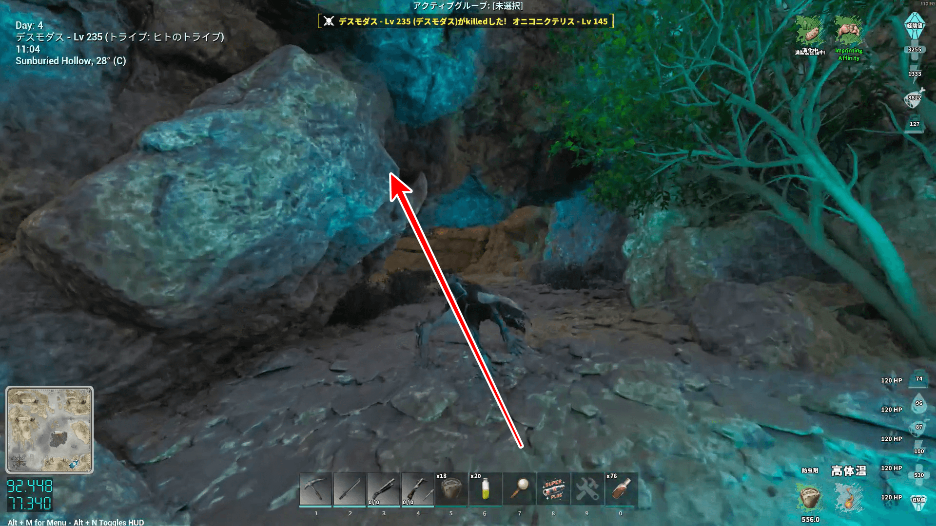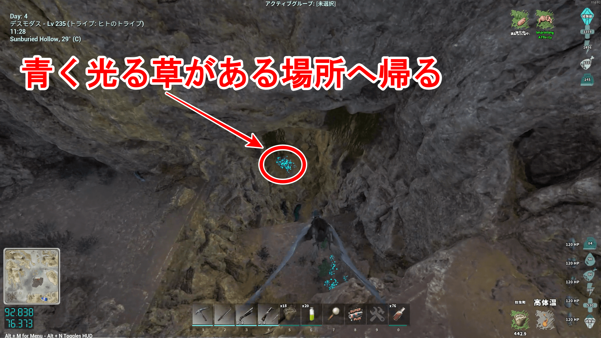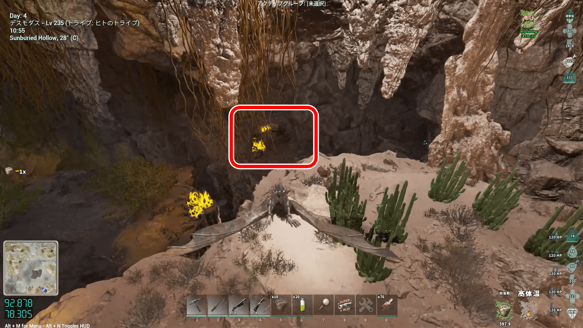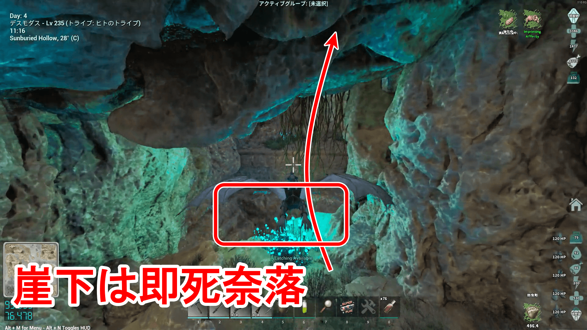洞窟内飛行が可能で崖上への移動も楽なデスモダスで攻略するのが最もおすすめだ。洞窟内の生物は上限突破していないため、フィールド上の生物を撃退できるデスモダスなら難なく攻略可能。