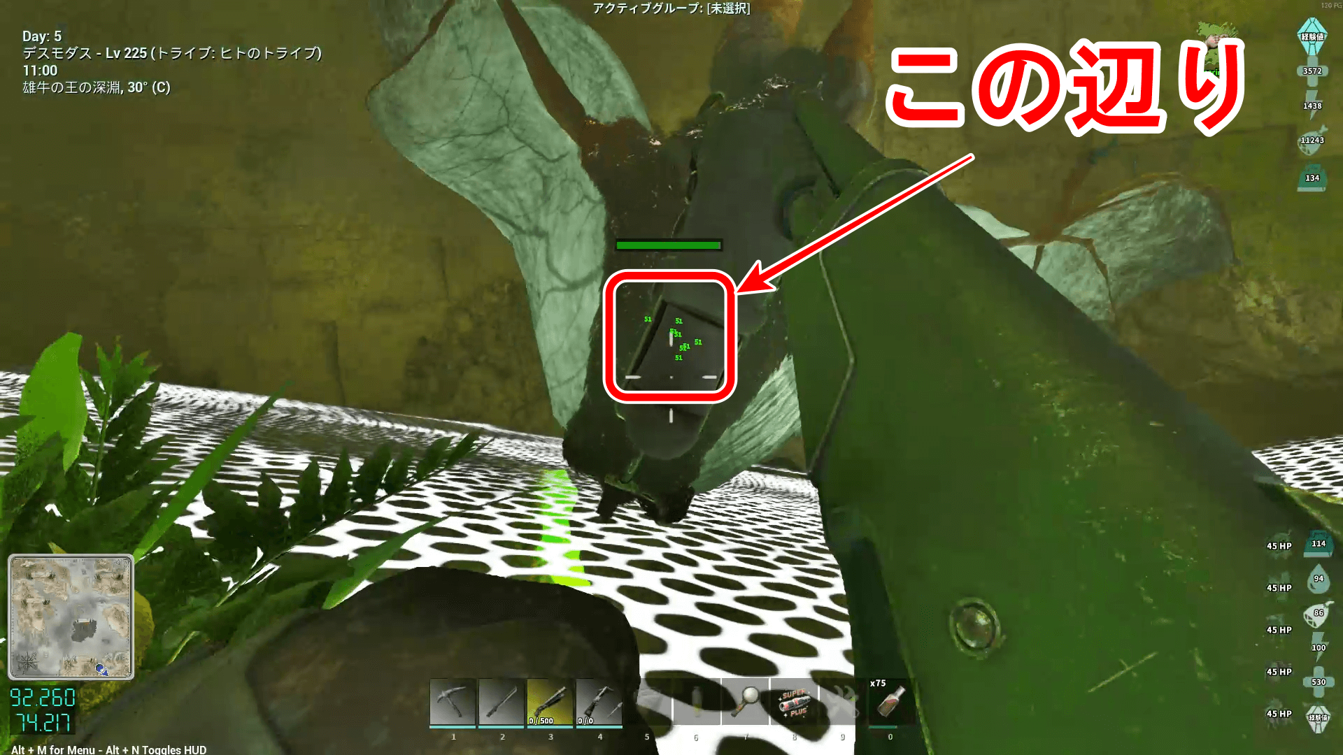 | おすすめ生物/装備 | ・ギリー装備 ・デスモダス ・ポンプアクション式ショットガン ・ショットガンの弾 |