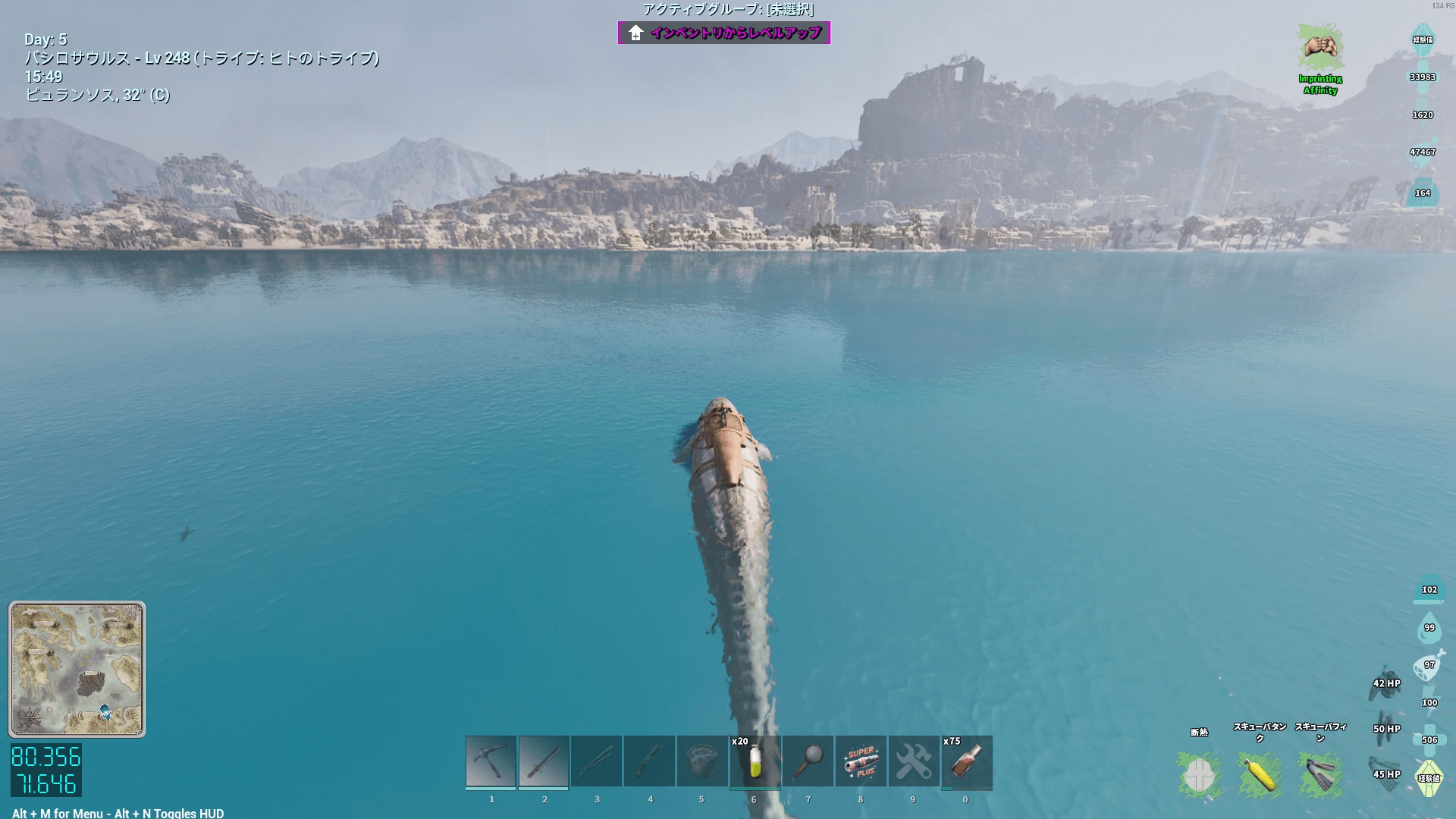 | おすすめ生物/装備 | ・スキューバ装備 ・バシロサウルス |