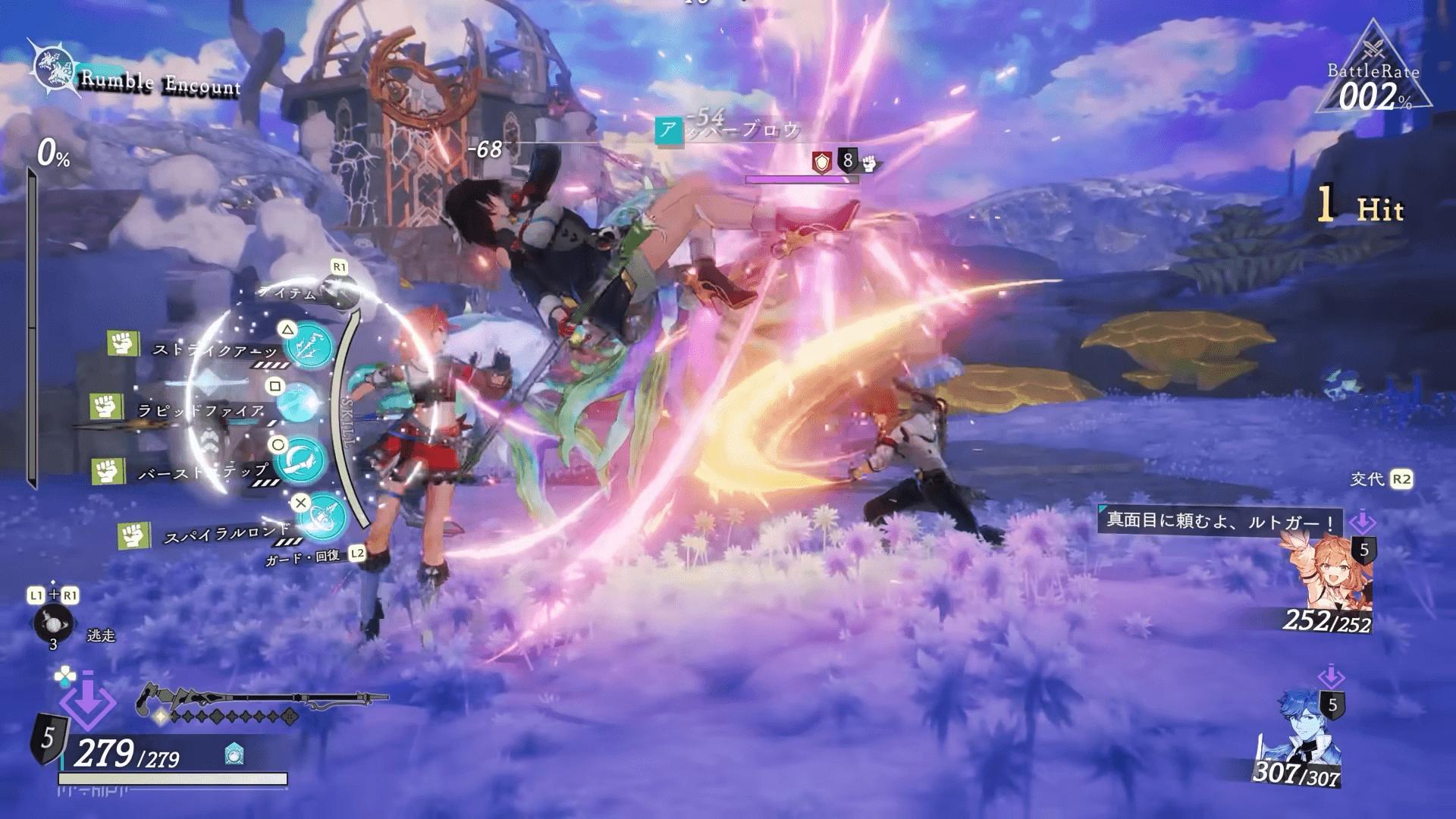 戦闘システムはリアルタイムで進行する、アクション要素の強いコマンドバトルへと変化した。ジャスト回避やジャストガードなどもあり、従来のシリーズ作よりもスピーディな展開が魅力的だ。