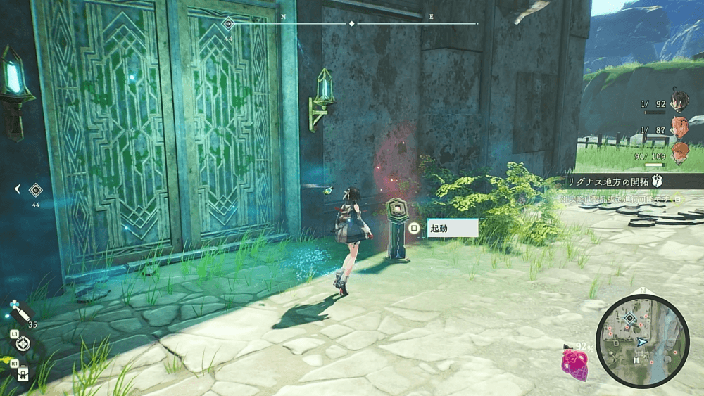 帝国第八研究所に着いたら、入口横にあるスイッチを起動して扉を開こう。入口は研究所の右下側にあり、建物の周囲を回っていればすぐに見つかる。