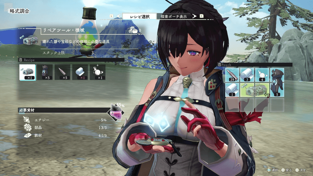育成には調合が必要不可欠なため、探索するついでで素材もできる限り持ち帰ると良い。河なら水や鉱石、森なら木材や植物などが多く手に入るため、欲しい素材に合わせて探索場所も変えていくのがおすすめだ。