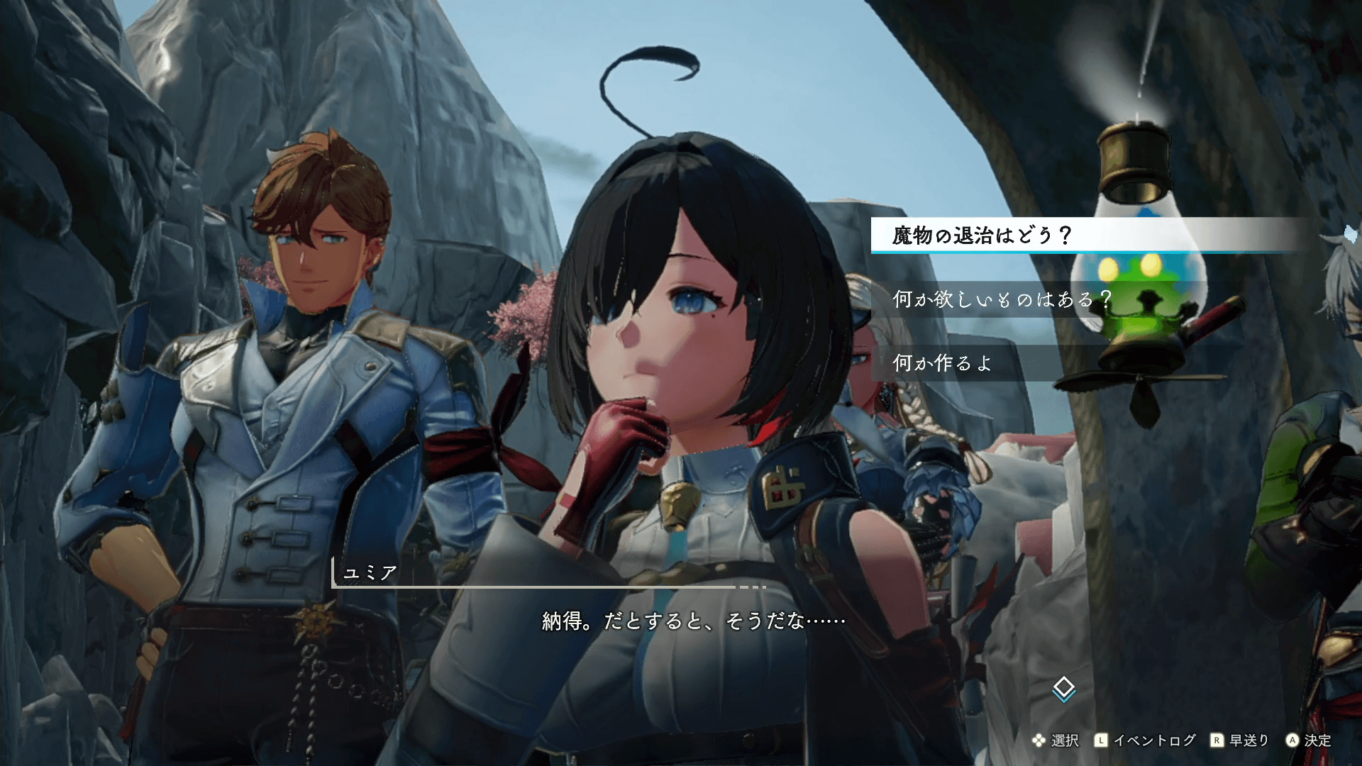 | 3 | 調査拠点に戻り、イベントを見る ※イベント内選択肢で次のクエストが変化 |