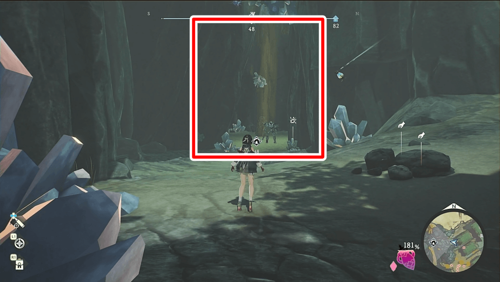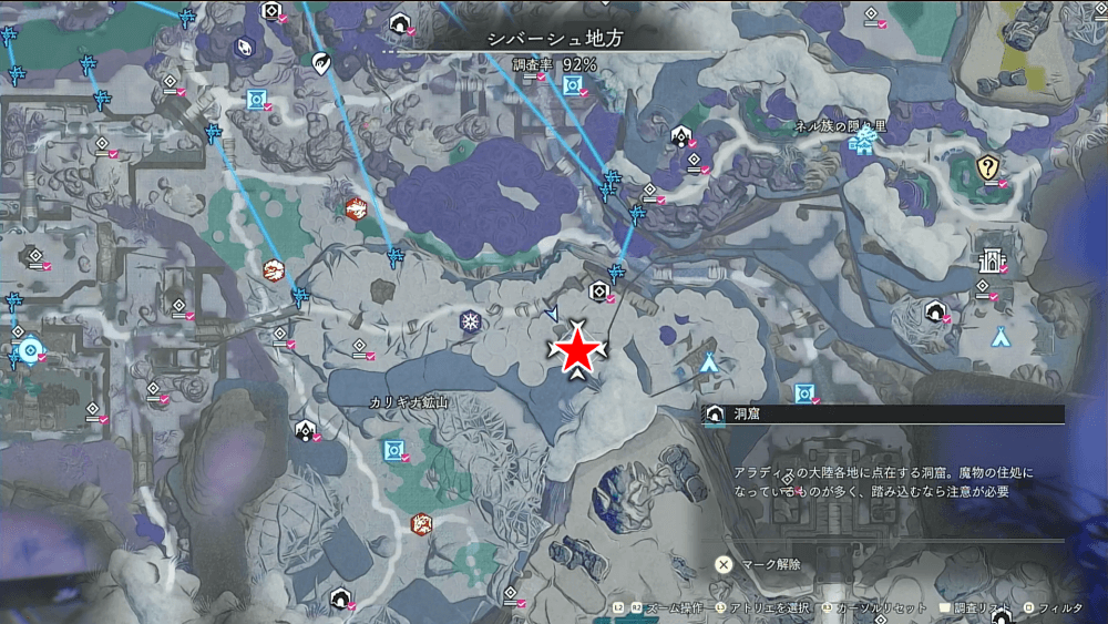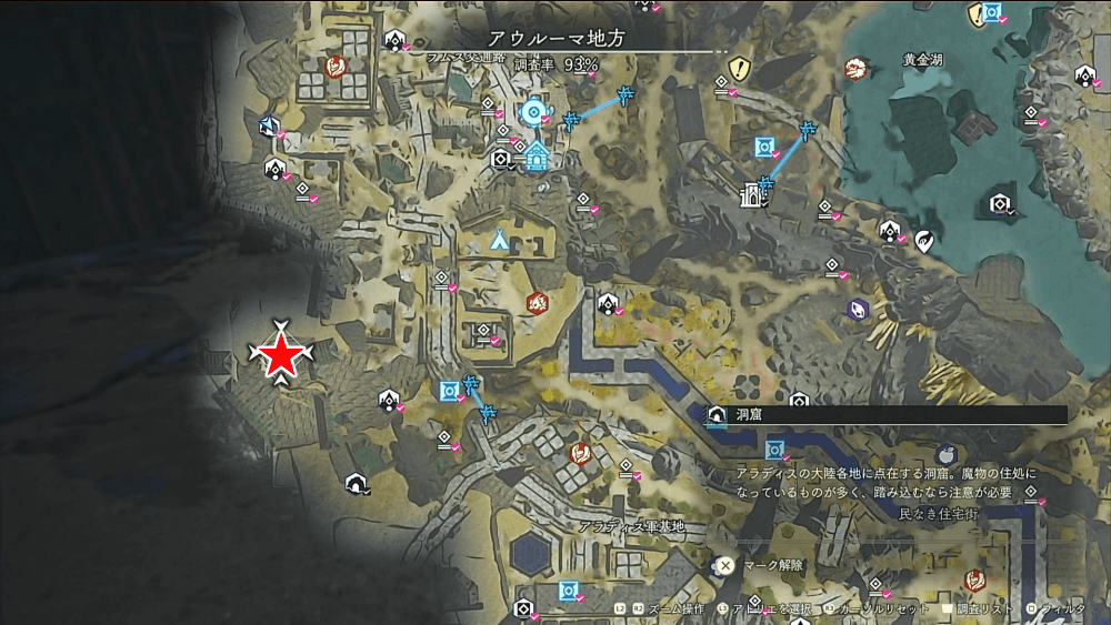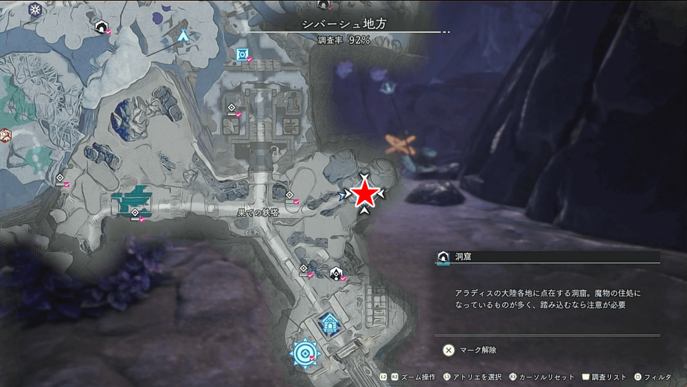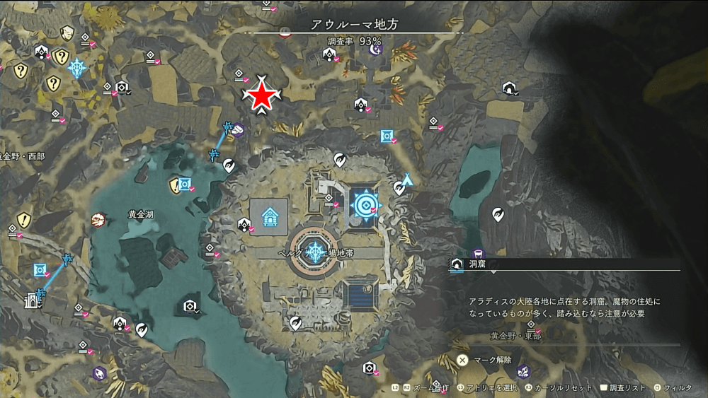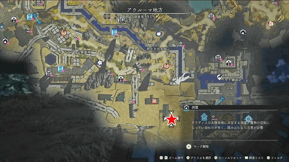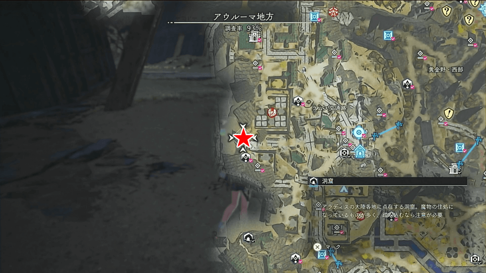 洞窟とは、各地に点在する封印された宝箱が設置された場所だ。洞窟内で入手できる宝箱からは、品質の高い素材などが手に入る。なお、未発見の状態の洞窟は、マップ上に「?」として表示されるため、洞窟を探したい時はマップの「?」アイコンを巡ると良い。