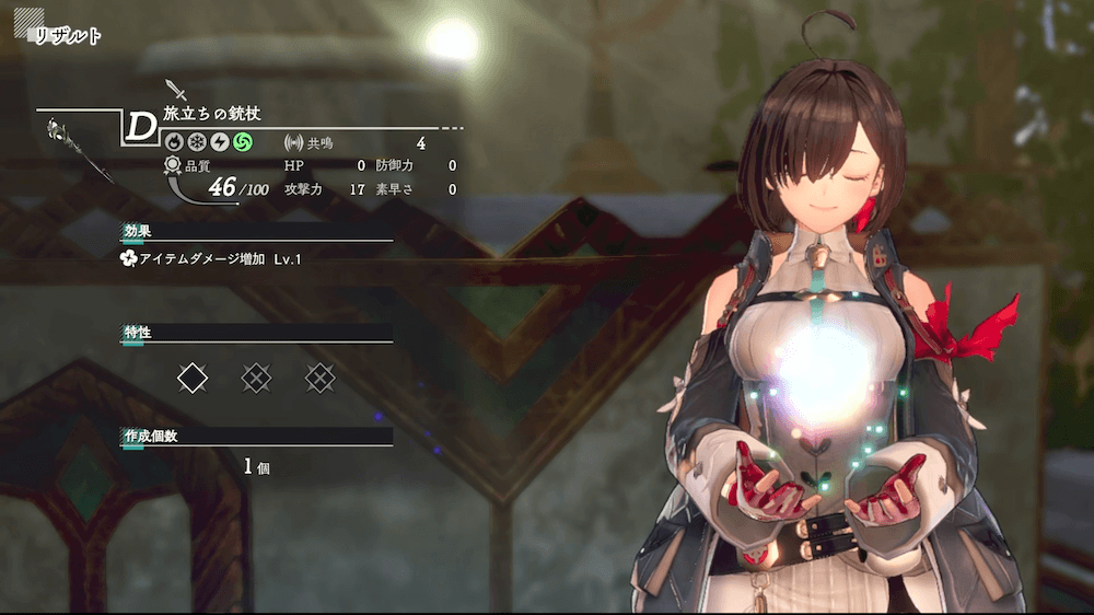 装備を作成する際、残響片でレシピレベルを上げよう。Lv3で攻撃力や防御力が大幅に増加し、Lv4なら特性追加枠が1個増える。複数のレシピを満遍なく強化するよりも、1種のレシピをLv3〜4まで上げきる用に育てると攻略が楽になる。