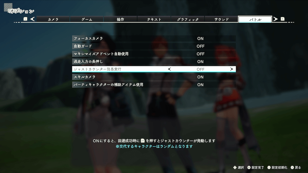 操作が忙しくてうまく動かせない人は、オプションのバトル設定を変更しよう。自動ガードやジャストカウンター簡易実行をONにすれば、攻撃と回避以外の動作を考えずに済む。