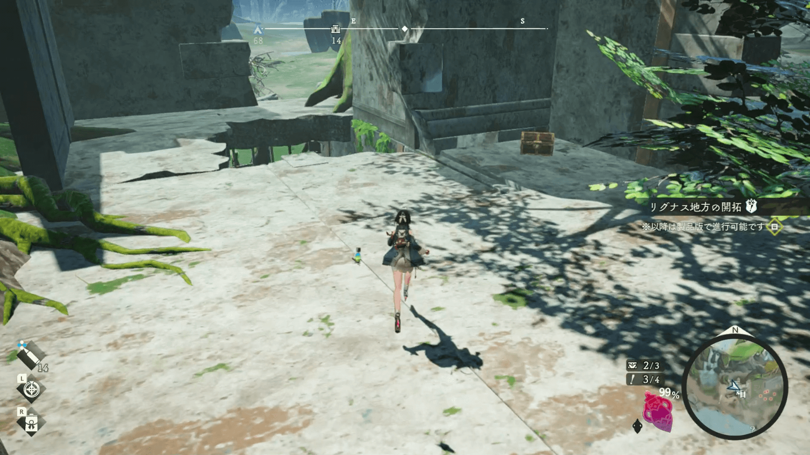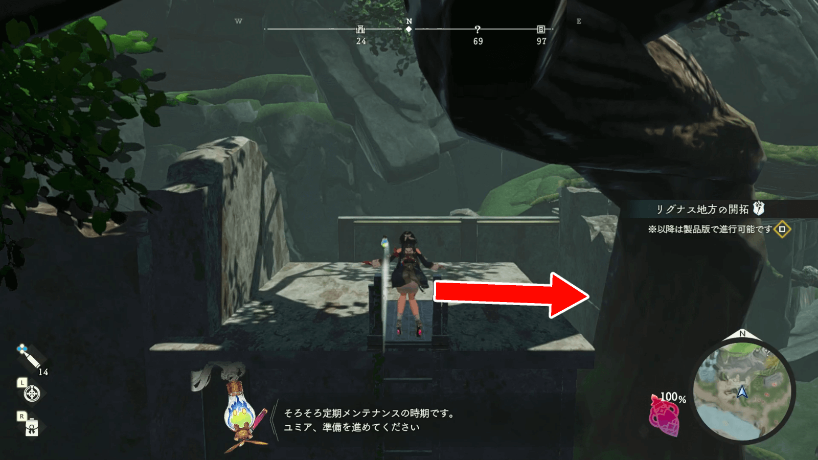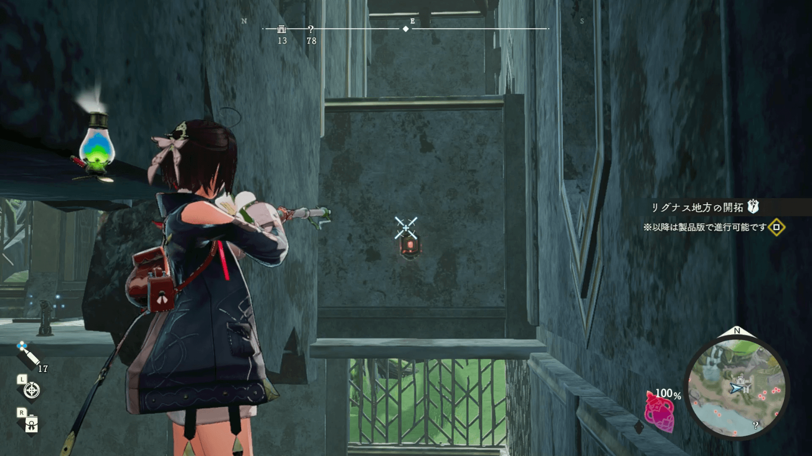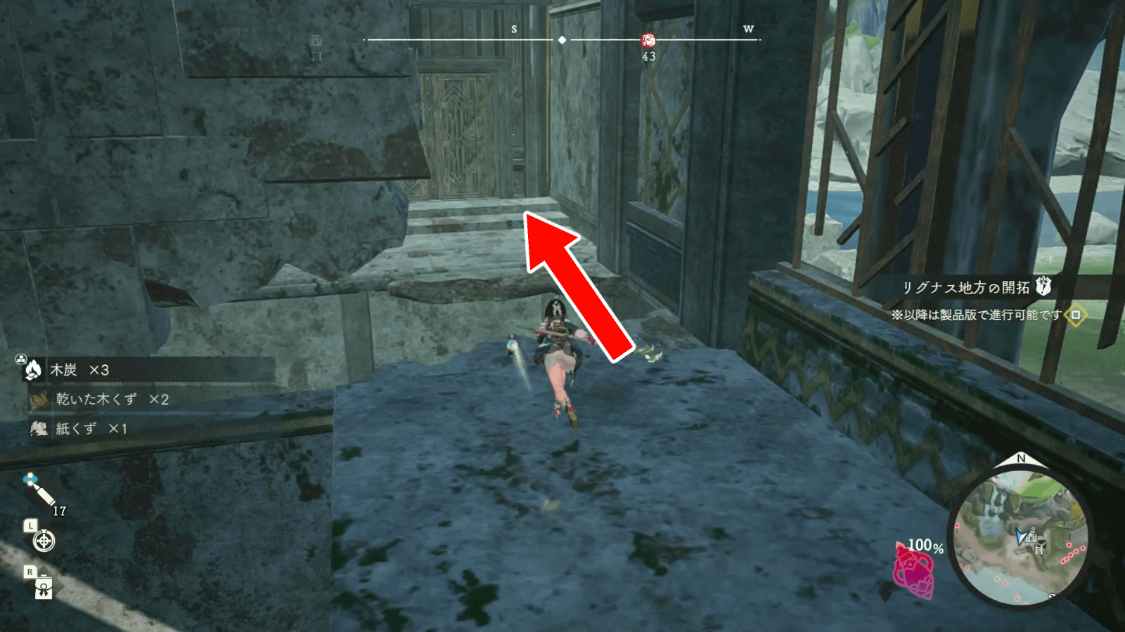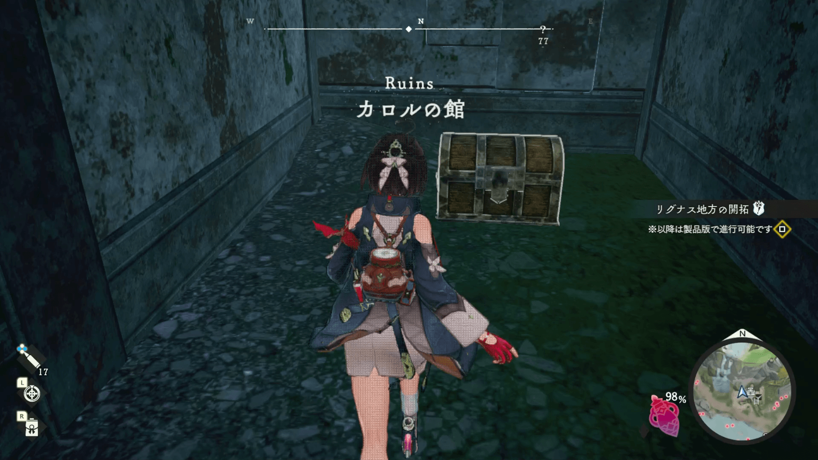 宝箱の場所 ミニゲーム 宝箱 中和剤・黄×3高台から下りたら、穴を迂回するように進んで宝箱を開けよう。宝箱では鍵のミニゲームが発生するので、画像を参考にクリアして回収すると良い。